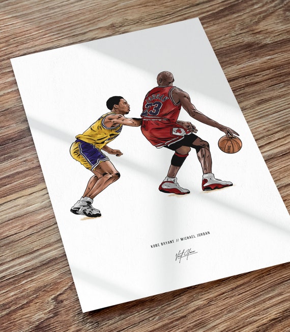 Kobe Bryant Michael Jordan Basketball Art Illustrated Print Etsy Canada